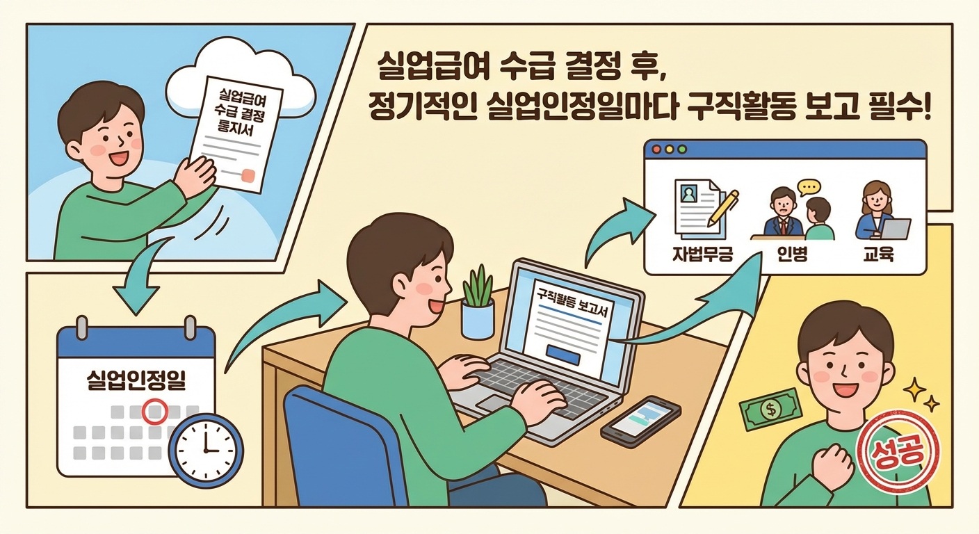 👉 신청 후엔 실업인정일마다 구직활동 증빙이 필요해요.